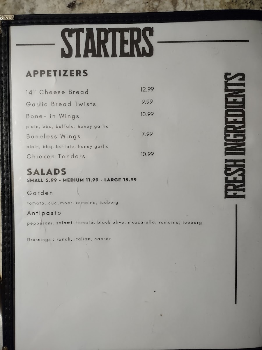What stands out right away is the variety. Whether you’re in the mood for a classic slice, a stacked sandwich, or something crispy and shareable for the table, there’s plenty to scan and crave. The flavors lean bold, the portions don’t hold back, and everything reads like it’s made for people who show up hungry. As you move down the page, it’s easy to picture the smell of fresh dough and melted cheese filling the air, making the decision of what to order the hardest part.